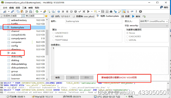 3.找到表disk和battemplate尝试打开,会提示打开失败如图所示