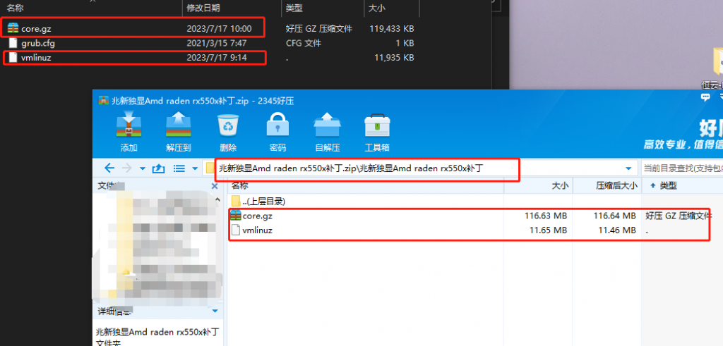 (2)打开grub文件夹,更换图片中选择的两个文件进行替换补丁。如图所示:(注意:补丁文件联系在线客服。)